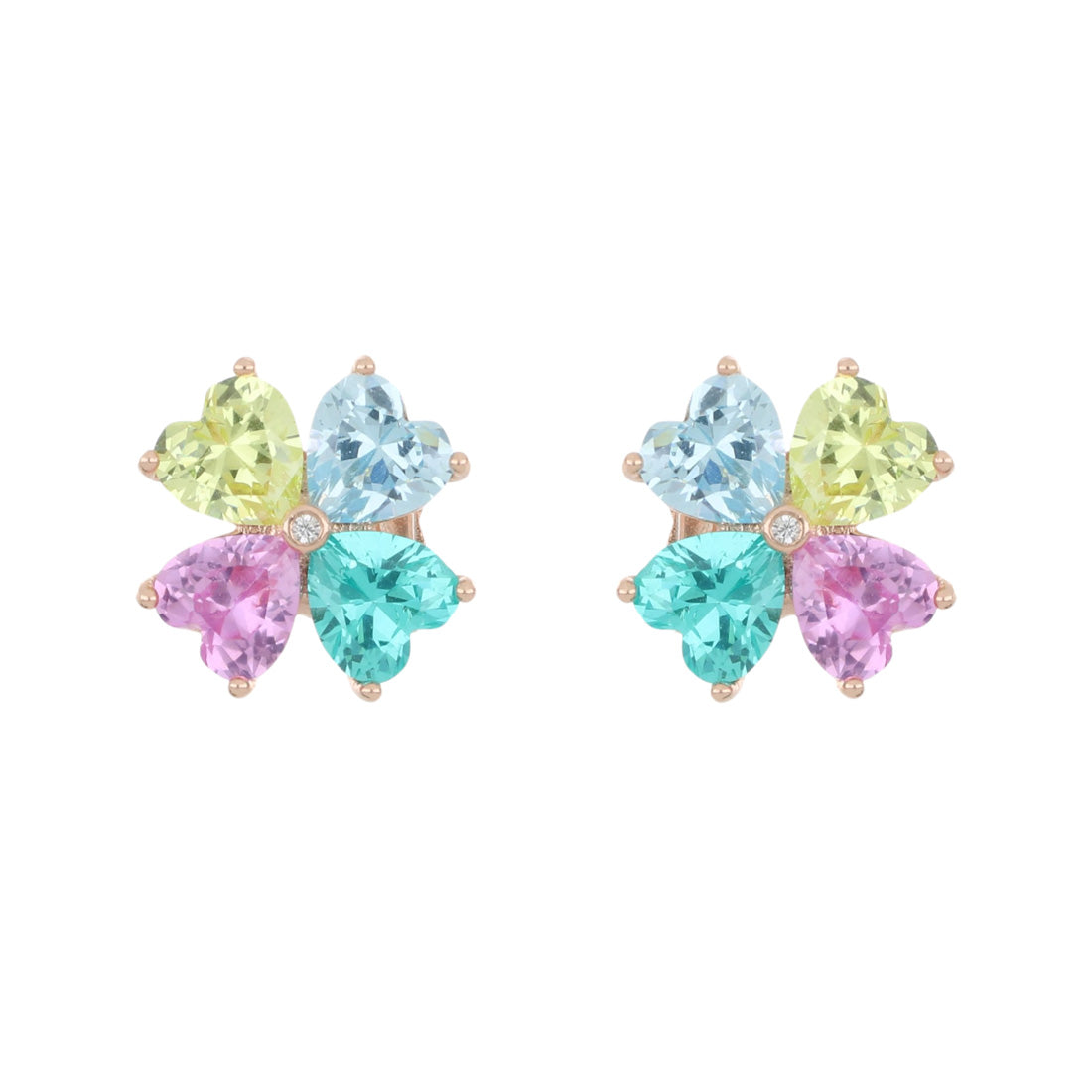 Light up your face with our Rainbow Clover Earrings, a must-have for those who love the combination of style and symbolism. These earrings, perfectly matched with the necklace and ring from the same collection, are crafted in a delicate rosé plating that makes them adorable. The finely crafted four-leaf clover is embellished with colored zirconia that add a touch of sparkle and vivacity, elegantly capturing the eye.