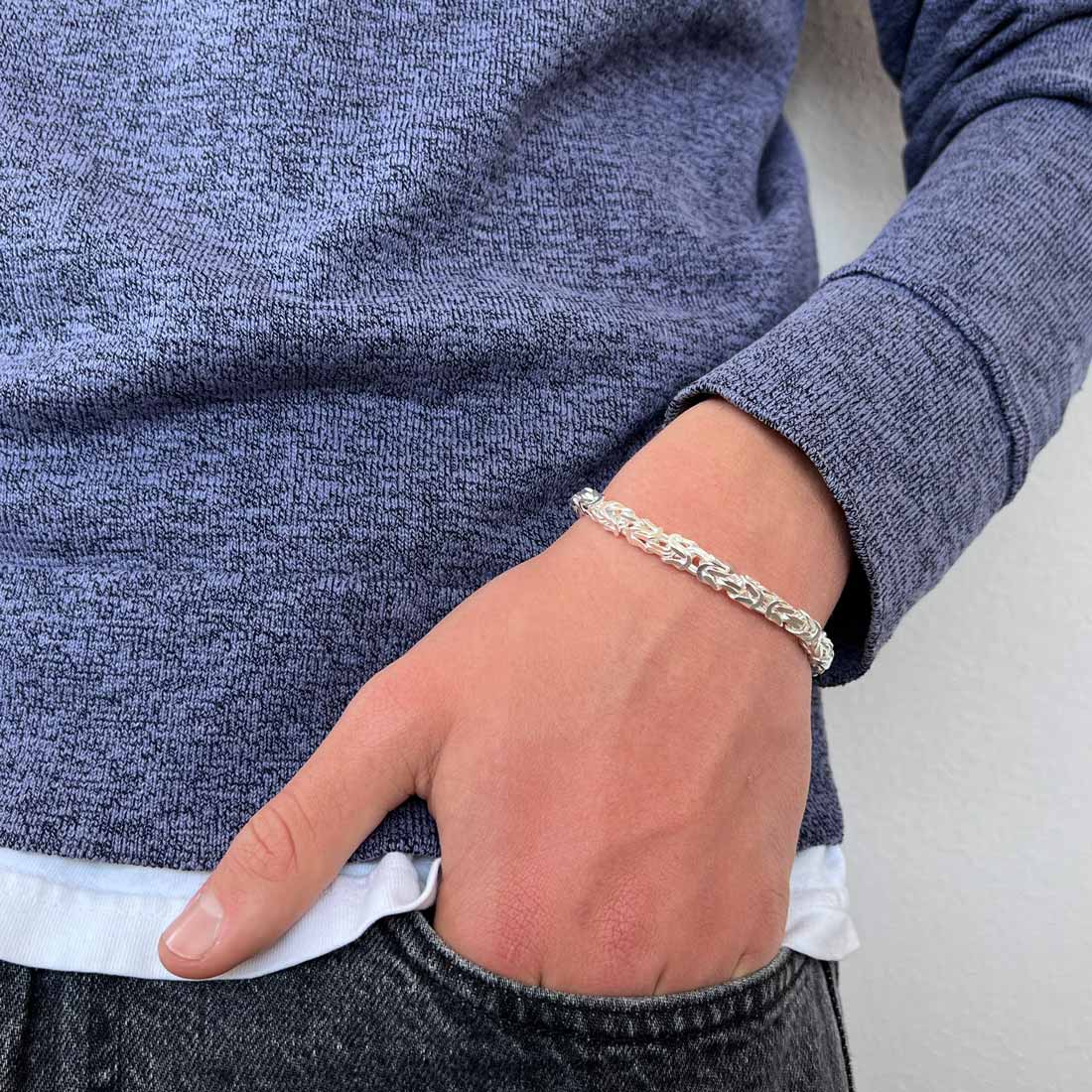 Il nostro bracciale bizantina per uomo è un prodotto di qualità superiore perché saldato ancora a mano, grazie a questa saldatura artigianale la catena risulta flessibile e di grande pregio rispetto a quelle che si trovano comunemente sul mercato dei gioielli online ed offline.