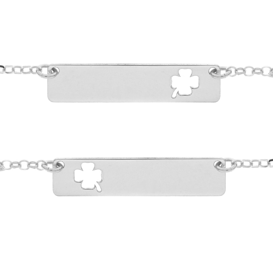 Bracciale con targhetta in argento forata lateralmente a forma di quadrifoglio e pendentino abbinato