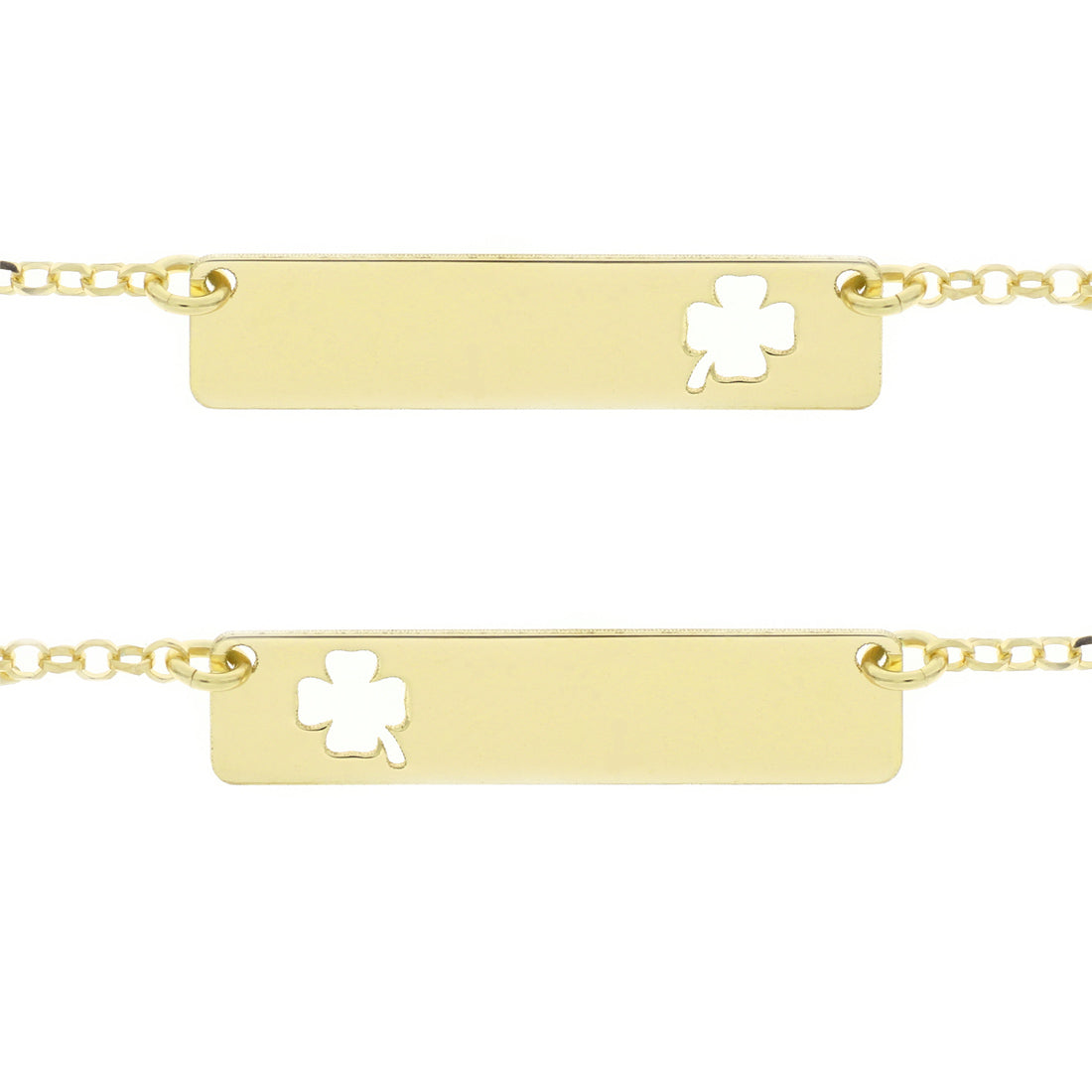Bracciale in argento con targa forata lateralmente a forma di quadrifoglio e pendente quadrifoglio dorato