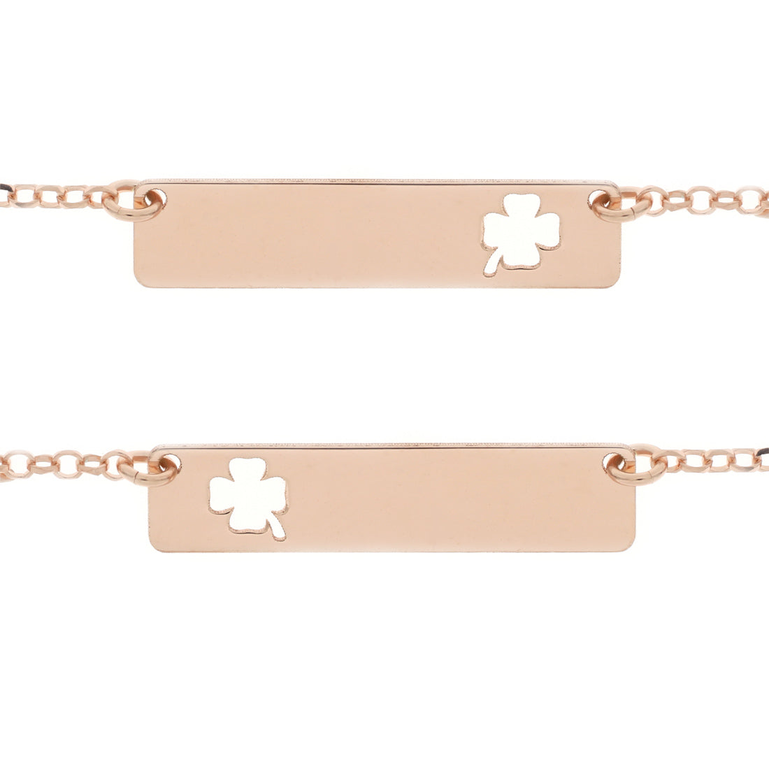 Bracciale oro rosa con targa quadrifoglio in argento e pendente abbinato