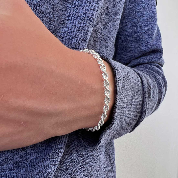 Il bracciale corda small è realizzato interamente in argento 925 massiccio, la catena corda è uno dei prodotti che la nostra azienda produce da sempre: il primo che nonna Giuseppina ha imparato a montare!
