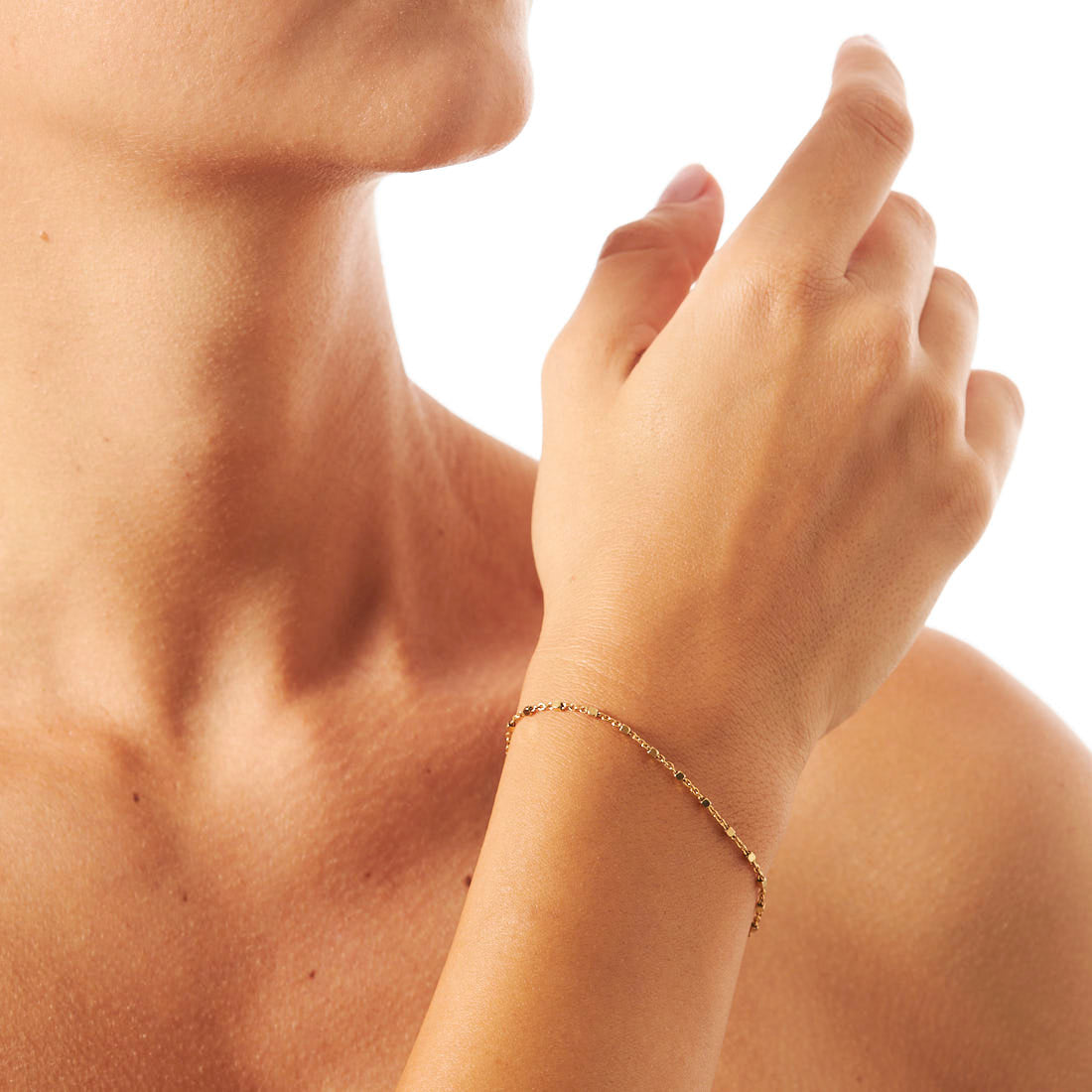 Minimal ma adorabile, è il bracciale leggero con piccoli dadini che riflettono la luce e fanno brillare i tuoi polsi.
