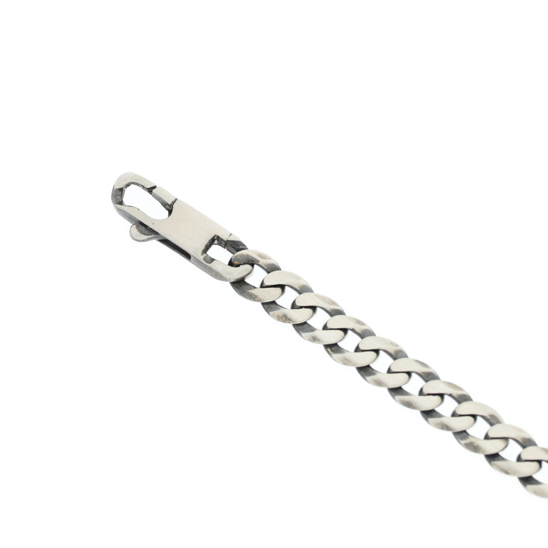 E' realizzato in argento 925 con catena grumetta piatta ed in versione fumé.
