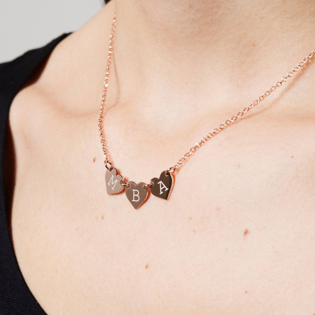 Personalizza i cuori di questa collana con le iniziali delle persone che ami: le lettere dei tuoi figli, l'inziale di tuo marito, le lettere dei tuoi nonni, quelle dei tuoi migliori amici. E poi l'inziale più importante: la tua!