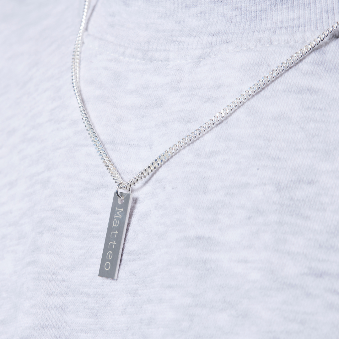 Una collana personalizzata maschile per portare con te ciò che conta davvero: le persone che ami, i tuoi valori, una parola che ti ispira.