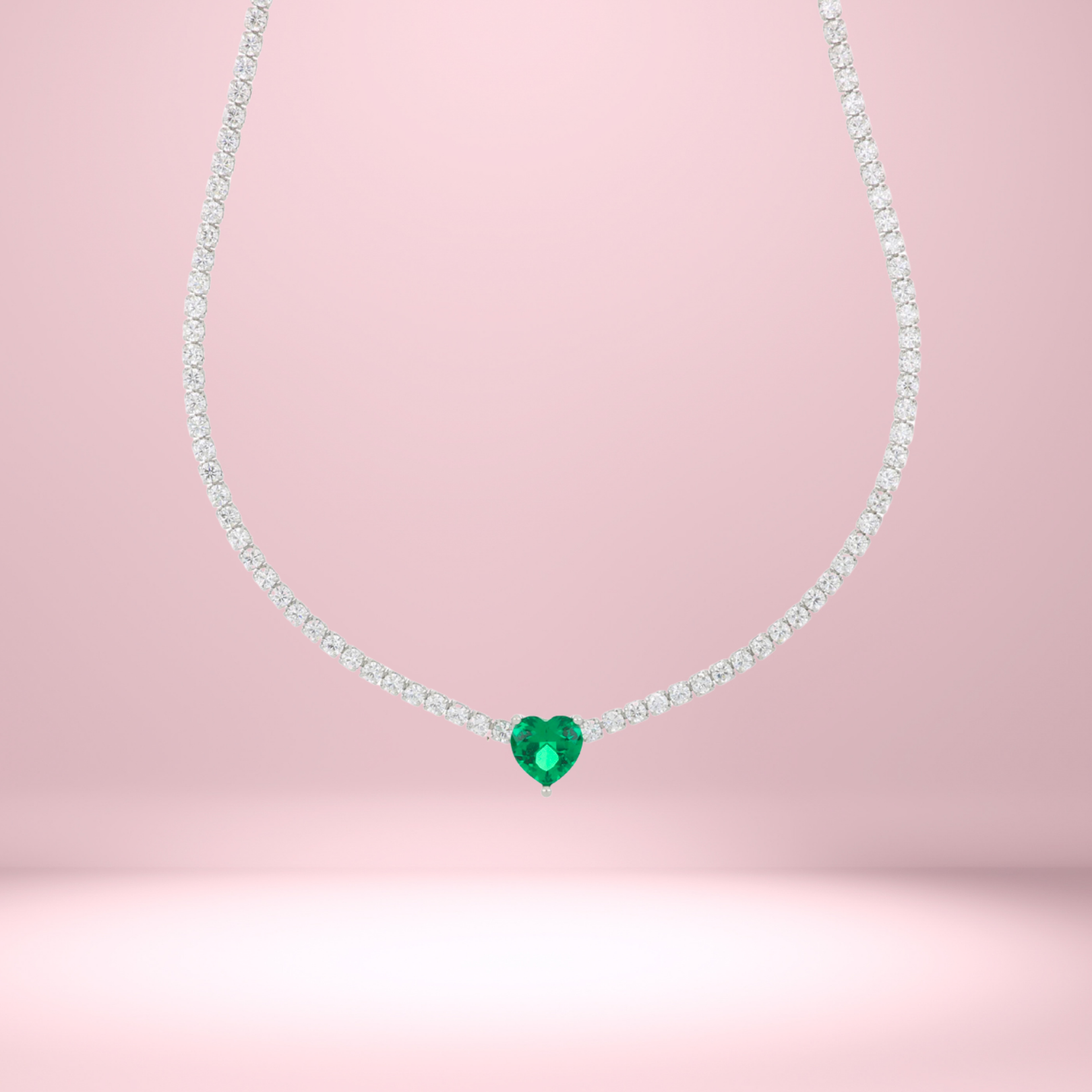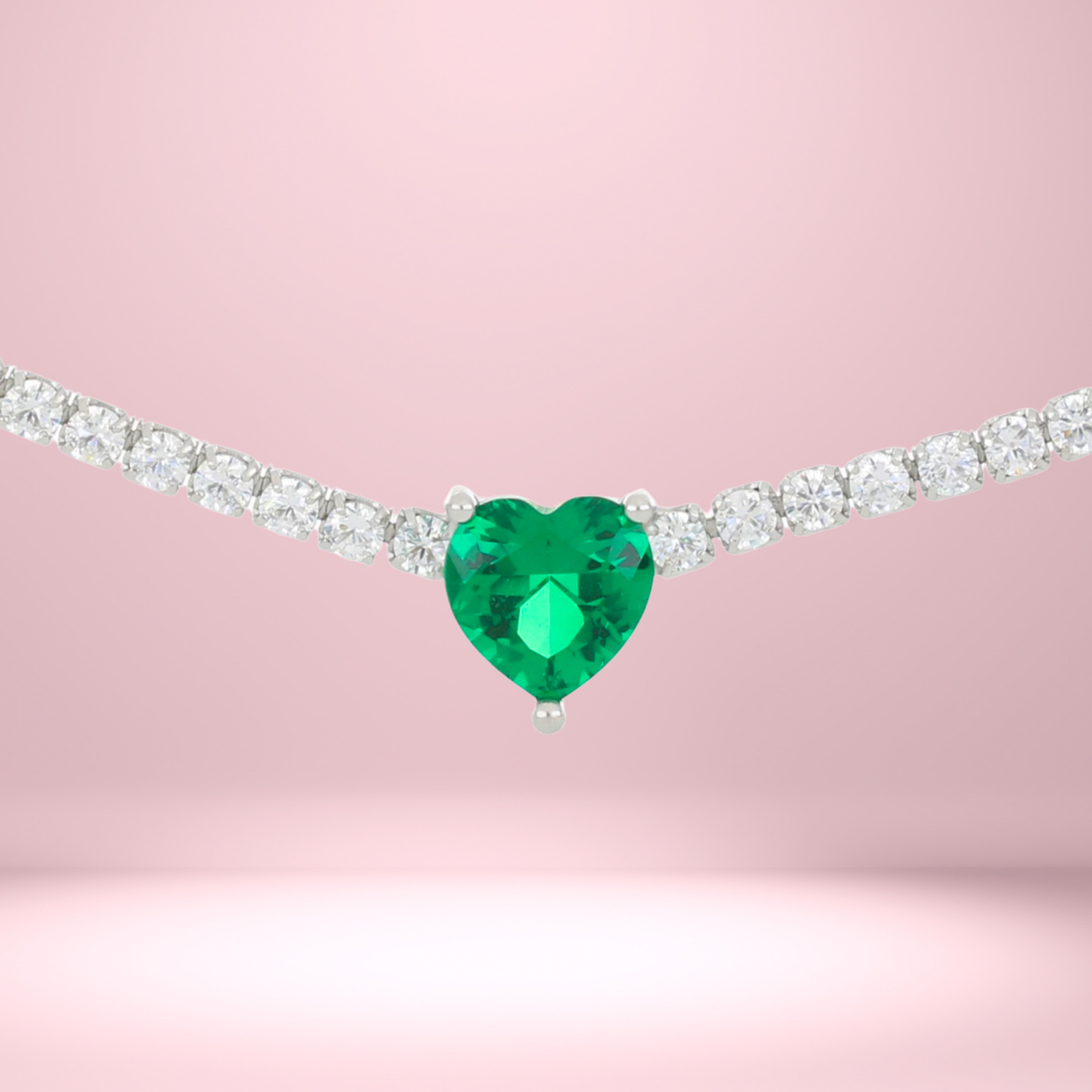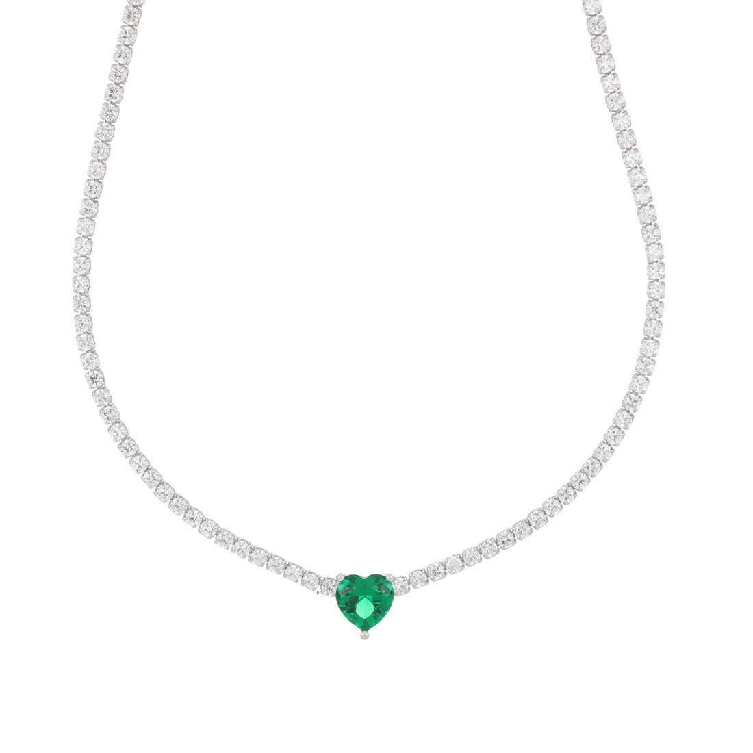La collana tennis è un classico di rara eleganza e col cuore verde diventa un accessorio contemporaneo e alla moda. Ideale come regalo e come accessorio per le occasioni importanti. Una collana capace di rendere speciale i tuoi look da cerimonia.