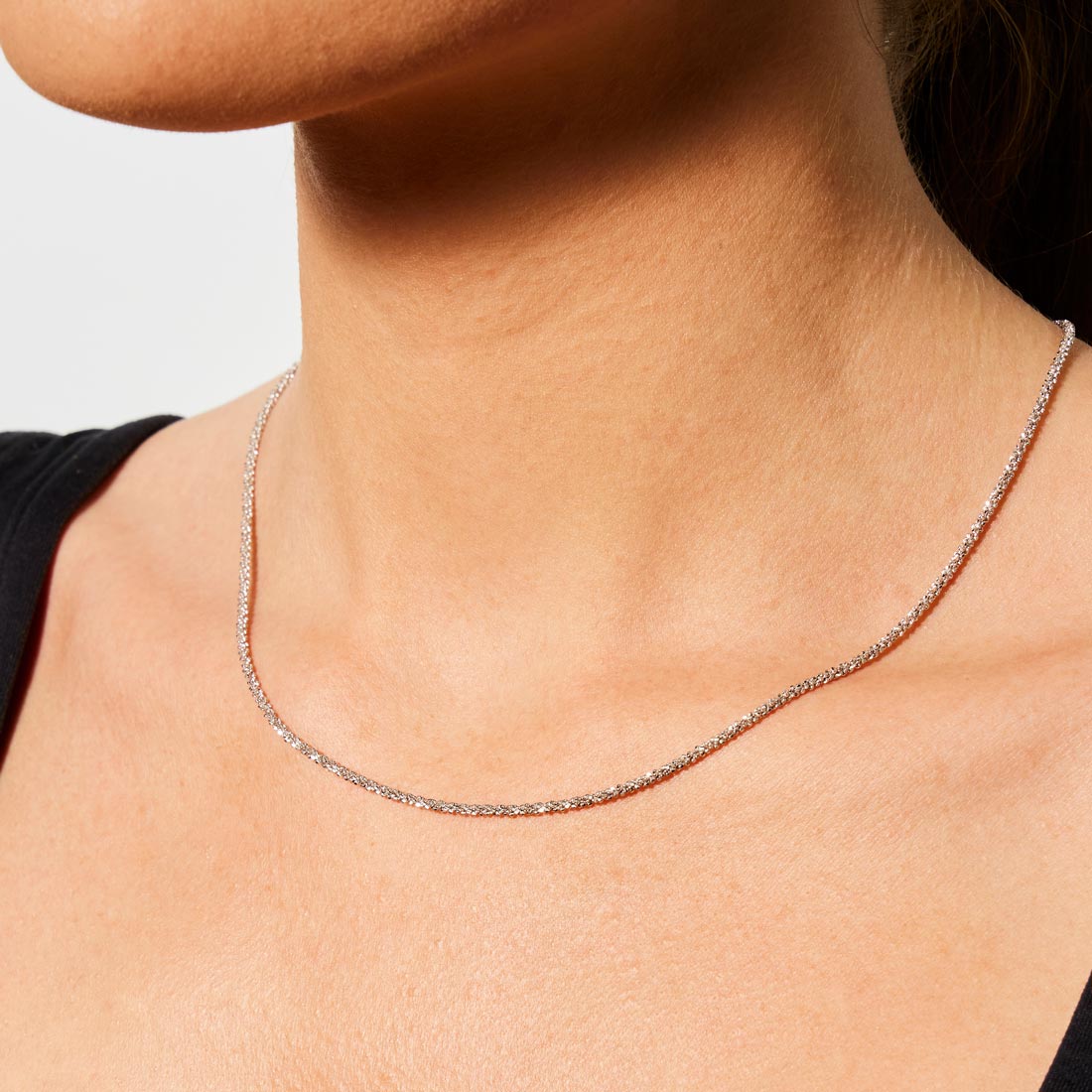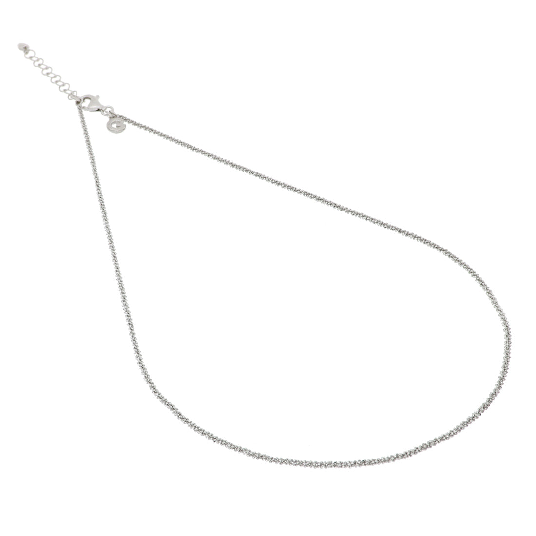 La collana luminosa è realizzata in argento 925 con la catena margherita che grazie al suo design la rende estremamente scintillante.