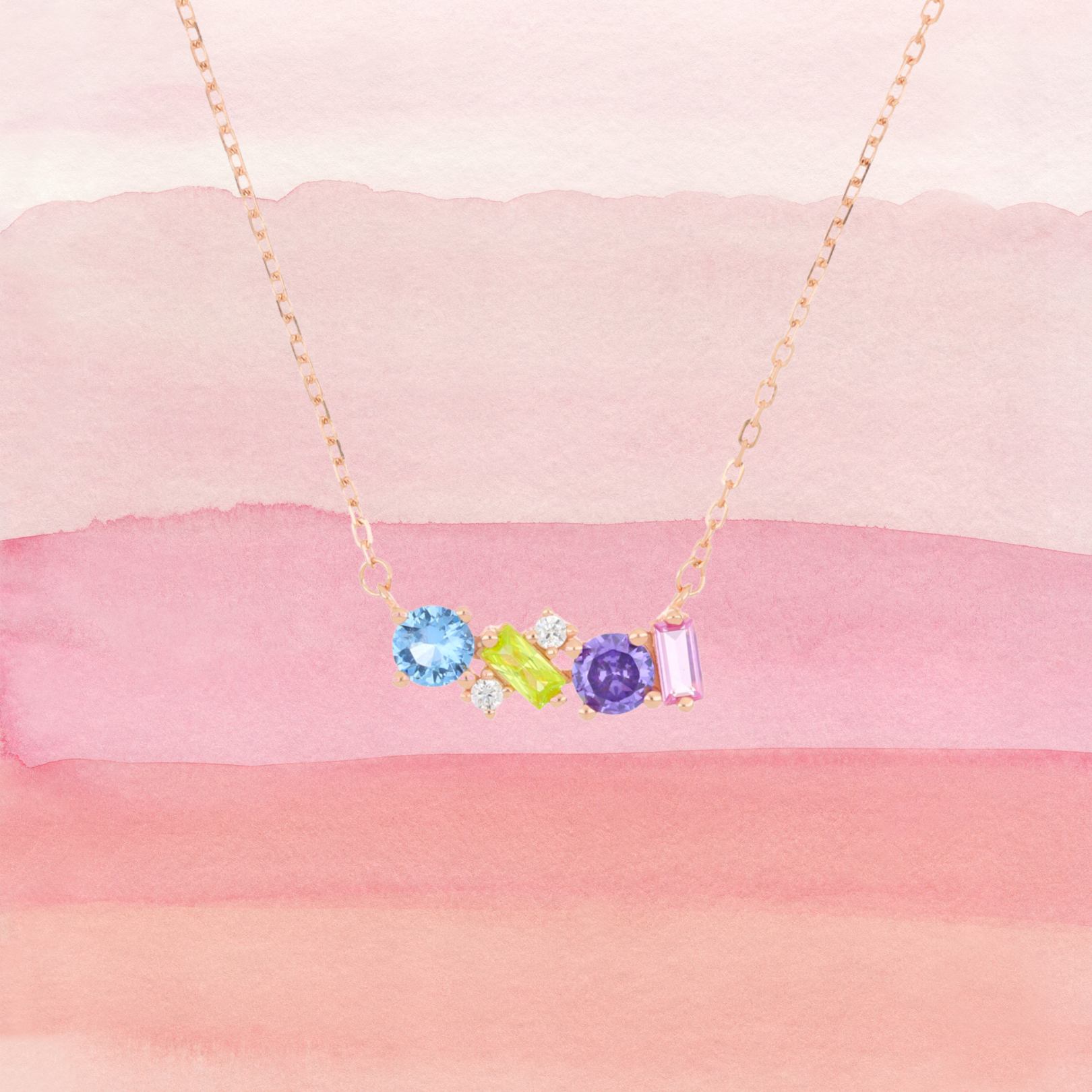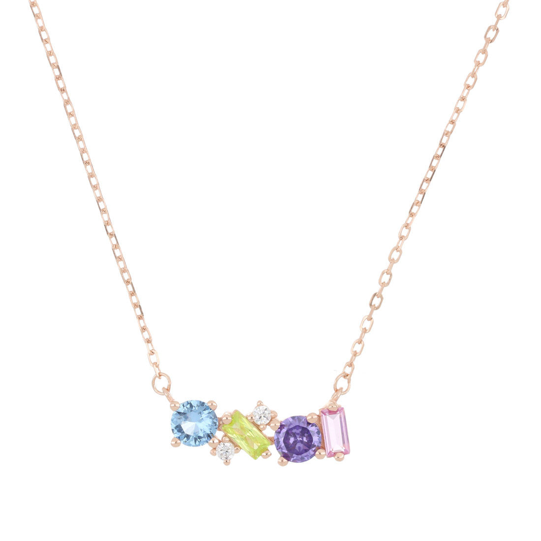 Perfetta per chi cerca un gioiello distintivo, questa collana cattura la luce grazie ai suoi zirconi multicolore, creando un affascinante gioco di riflessi.