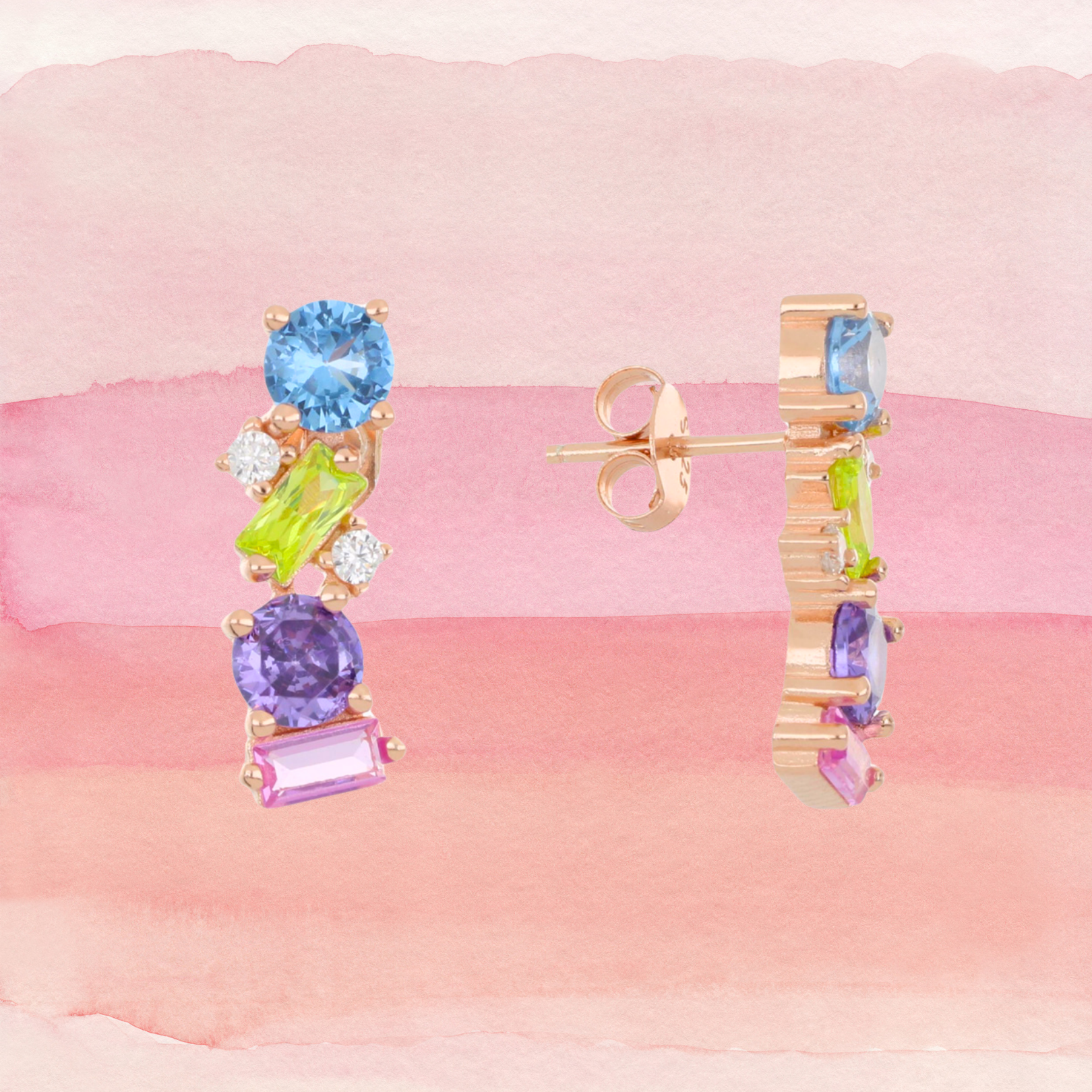 Illumina il tuo look con i nostri Orecchini Sparkle, realizzati in Argento 925 e placcati in oro rosa. Caratterizzati da zirconi colorati dalle forme irregolari, questi orecchini catturano la luce da ogni angolazione, creando un effetto brillante e dinamico che non passerà inosservato.